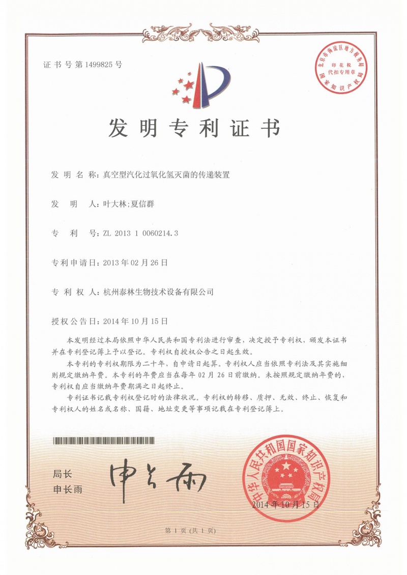 VHPÆû»¯×±ÖõĿØÖÆÒªÁì¼°Ãð¾ú×°±¸ZL 2024 1 1013889.7 -