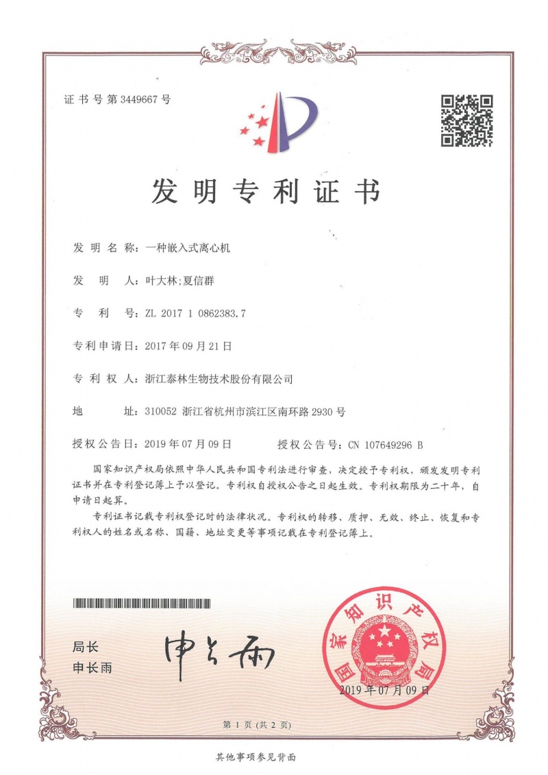 Ò»ÖÖǶÈëʽÀëÐÄ»úZL 2017 1 0862383.7 -