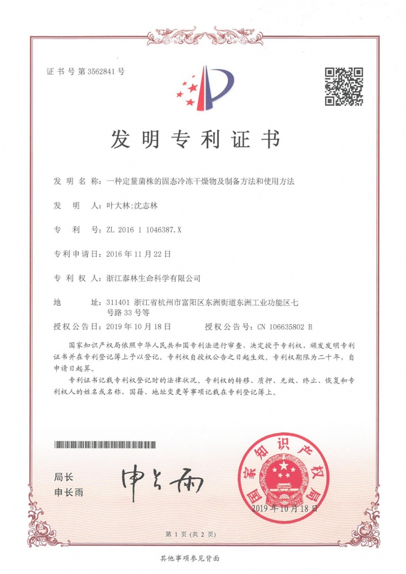 Ò»ÖÖ¶¨Á¿¾úÖêµÄ¹Ì̬Àä¶³¸ÉÔïÎï¼°ÖÆ±¸ÒªÁìºÍʹÓÃÒªÁìZL 2016 1 1046387.X -